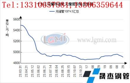 圖1 2023年-2024年十大主導城市108*4.5連軋無縫管市場均價走勢圖