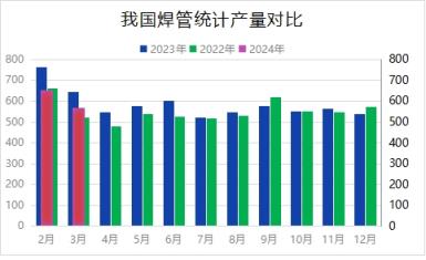 一、3月國內焊接無縫鋼管產量同比減少78.3萬噸