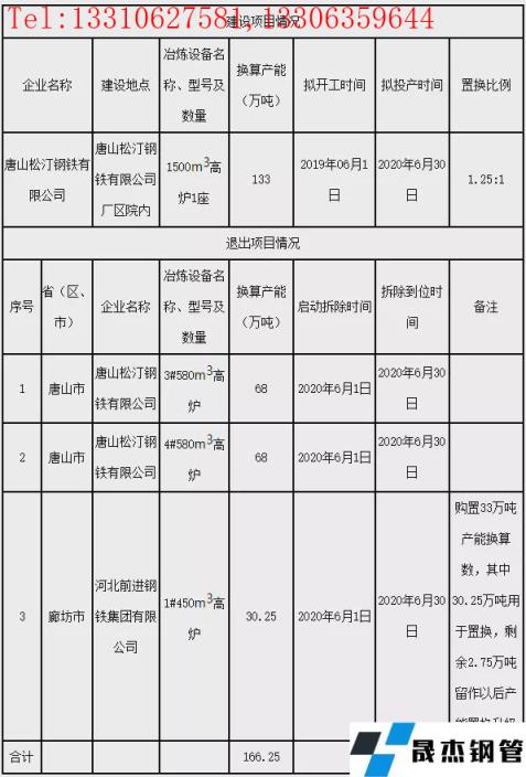 唐山松汀鋼鐵煉鐵建設項目產能置換方案公告