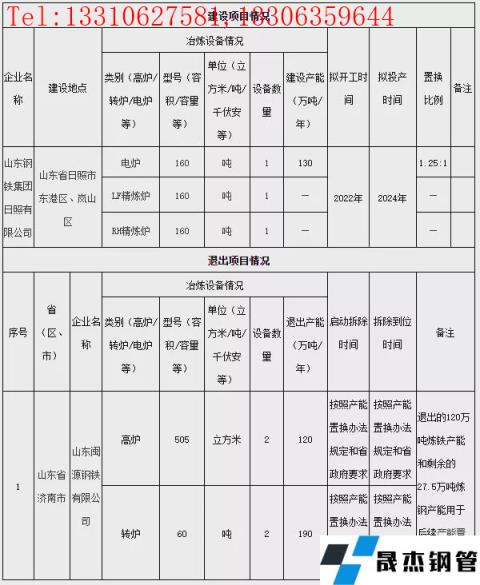 2022年1月11日,山東省工信廳發布《日照鋼鐵精品基地短流程綠色智慧示范項目產能置換方案》。方案表明,山東鋼鐵集團日照有限公司擬于2022年在山東省日照市東港區、嵐山區新建160t電爐1座,160tLF精煉爐1座,160tRH精煉爐1座,共計產能130萬噸/年,預計2024年投產。同時,山東閩源鋼鐵有限公司退出505m3高爐2座,產能120萬噸/年;60t轉爐2座,產能190萬噸/年。