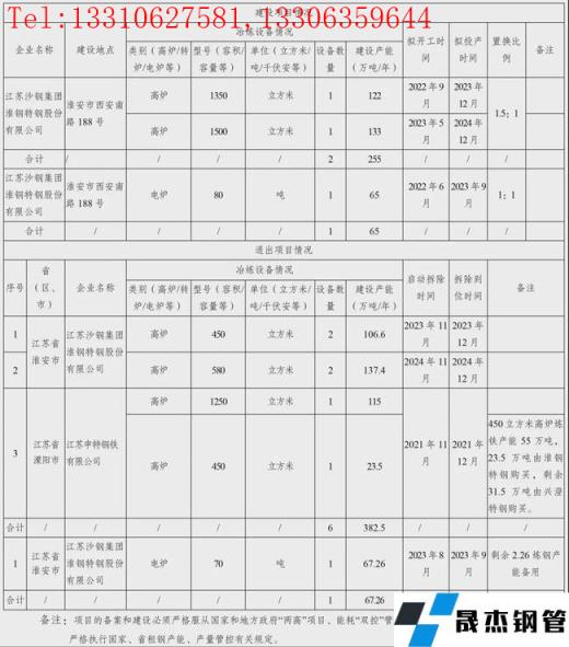 2022年1月6日,江蘇省工信廳發布沙鋼集團淮鋼特鋼高爐電爐綠色升級改造項目產能置換方案。方案表明,江蘇沙鋼集團淮鋼特鋼股份有限公司擬于2022年6月-2023年5月新建1350m3高爐1座、1500m3高爐1座和80t電爐1座,共計新增煉鐵產能255萬噸/年,煉鋼產能65萬噸/年。所有項目預計2023年9月-2024年12月投產。