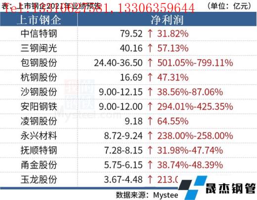 免責聲明:本網站(山東聊城晟杰無縫鋼管廠www.centurybiz.cn)刊載的“2021年鋼企利潤創新高,中信特鋼實現凈利近80億”等均源于網絡,版權歸原作者所有,且僅代表原作者觀點,本文所載信息僅供參考。轉載僅為學習與交流之目的,如無意中侵犯您的合法權益,請及時聯系刪除。本網站刊登此篇文章并不意味著本站贊同其觀點或證實其內容的真實性,我們不對其科學性、嚴肅性等作任何形式的保證。如果侵犯了您的版權,請盡快聯系我們予以撤銷,謝謝合作!
