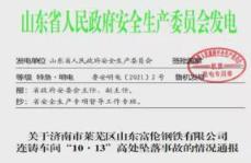 事故情況:濟南市萊蕪區山東富倫鋼鐵有限公司連鑄車間發生人員高處墜落事故,造成3人死亡、1人受傷。