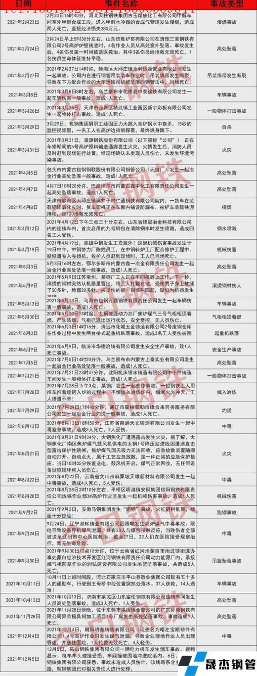 回顧整個2021年,鋼鐵冶金行業的生產安全一直是備受關注的話題,整年可以用一句話概括:安全事故頻發,血的教訓!2021年已結束,但安全工作沒有結束,發生的一起起事故仍然歷歷在目,血的教訓不能再用血來驗證,生命的代價不能再用生命來支付。站在2022陰歷新年的開端,回顧這些慘痛的事故是想以此為警醒,提醒大家重視安全生產,共筑安全防線!
