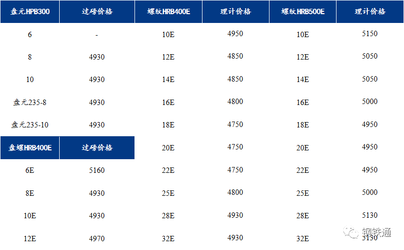 2、盤螺平穩:HRB400EΦ8-10mm盤螺指導價格為4940元,6mm加價500元/噸;