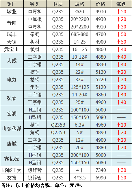 今日板、型、管材共14家鋼廠調價發布,其中: