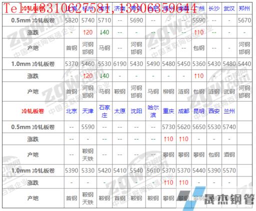全國23個主要市場1.0mm 冷軋板卷平均價格5476元/噸,較上個交易日上調1元/噸。
