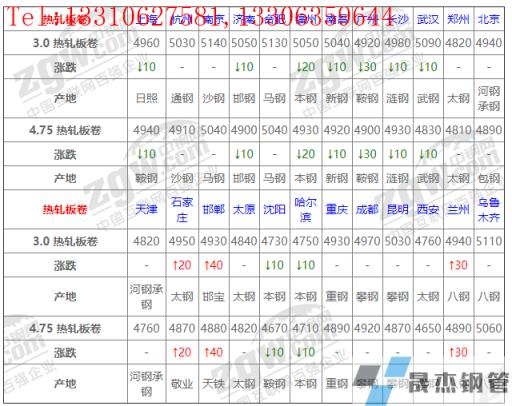 全國24個主要市場4.75 熱軋板卷平均價格4876元/噸,較上個交易日下調2元/噸。