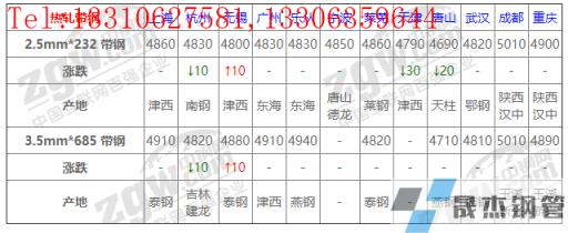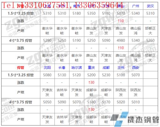全國15個主要市場4寸*3.75 焊管平均價格5149元/噸,較上個交易日上調2元/噸。