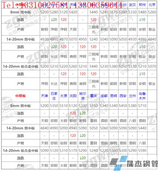 全國23個主要市場14-20mm 低合金中板平均價格5252元/噸,較上個交易日上調2元/噸。