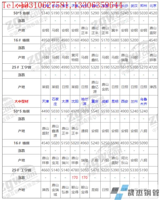 今型價個別調整70,成本支撐上移,但由于季節性疲軟,需求持續萎縮,型價漲勢放緩,部分廠商低位探漲,成交平平。預計短期型鋼價格或穩中整理;
