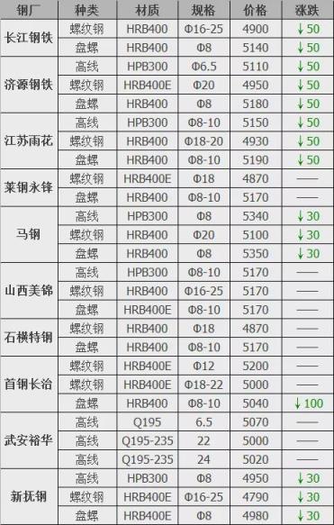 跌幅最大為首鋼長治盤螺;
