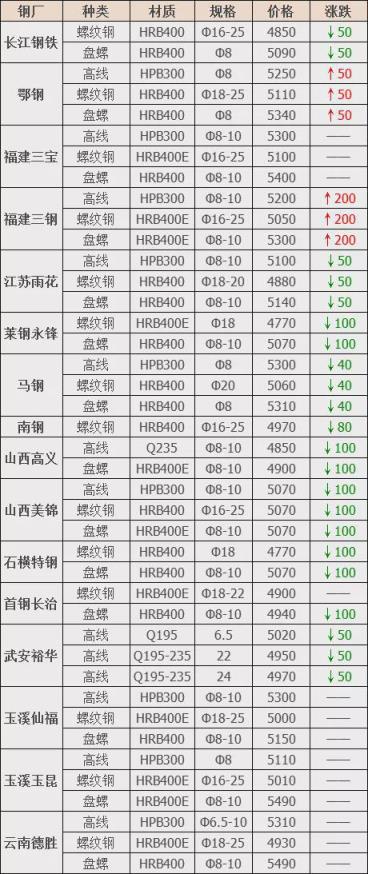 下調(diào)11家,占比68.7%,調(diào)價幅度40-100元/噸;