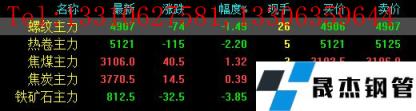 今日螺紋主力期貨跌74,收?qǐng)?bào)4907,跌幅1.49%;熱卷主力跌115,收?qǐng)?bào)5121,跌幅2.2%;焦煤主力漲40.5,收?qǐng)?bào)3106,漲幅1.32%;焦炭主力漲14.5,收?qǐng)?bào)3770.5,漲幅0.39%;鐵礦石主力跌32.5,收?qǐng)?bào)812.5,跌幅3.85%。