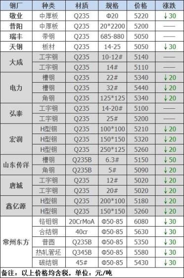 今日建、管材共11家無縫鋼管廠家調價發布,其中: