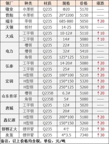 18日廣東河源德潤鋼鐵到廠漲60:鋼筋切粒3550;邊角料,新鋼板料3520;純鋼筋頭,直鋼筋3500;模具鋼、料頭圓鋼、軌道鋼、火車輪3500;硅鋼片停收;冷軋、熱軋、碎料沖子3450;優重3500;鍛打料、馬蹄鐵3500;重廢3450;機械生鐵、高碳鋼、鑄鋼件、生熟混裝3450,厚剪3400,不含稅