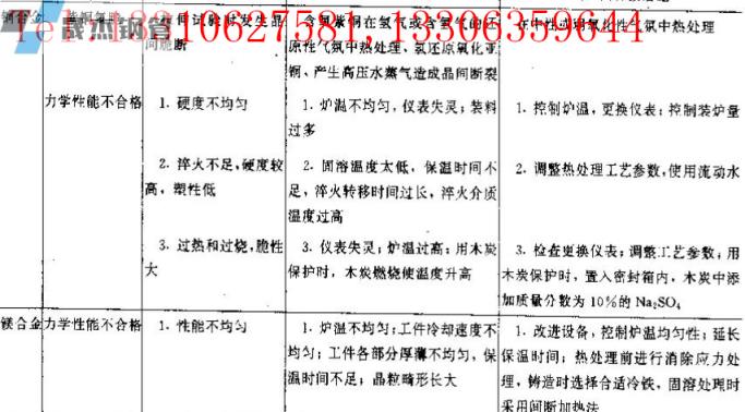 ▼表3有色金屬熱處理常見力學性能缺陷及防止方法