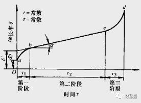 第一階段ab為減速蠕變階段又稱過渡蠕變階段,這一階段開始的蠕變速率很大,隨著時(shí)間延長(zhǎng)蠕變速率逐漸減小,到b點(diǎn)蠕變速率達(dá)到最小值;
