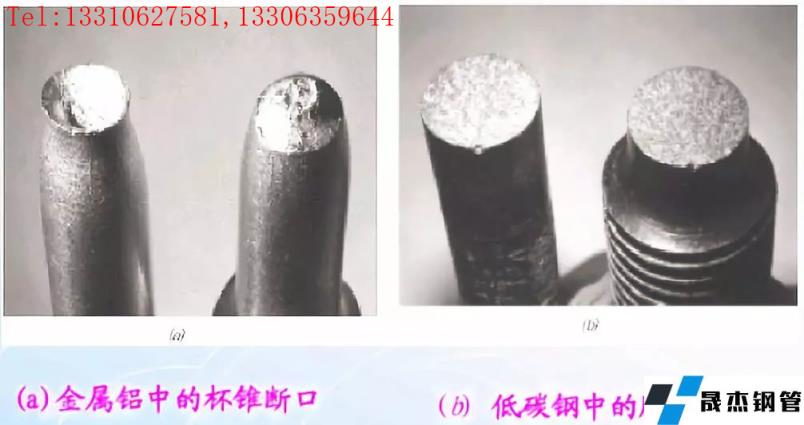 韌性斷裂有兩種類型: 一種是宏觀斷面取向與最大正應(yīng)力相垂直的正斷型斷裂,又稱平面斷裂,這種斷裂出現(xiàn)在形變約束較大的場(chǎng)合,如平面應(yīng)變條件下的斷裂;另一種是攻關(guān)斷面取向與最大切應(yīng)力方向相一致的切斷,即與最大正應(yīng)力約呈45°,又稱斜斷裂,這種斷裂出現(xiàn)在滑移形變不受約束或約束較小的情況,如平面應(yīng)力條件下的斷裂。