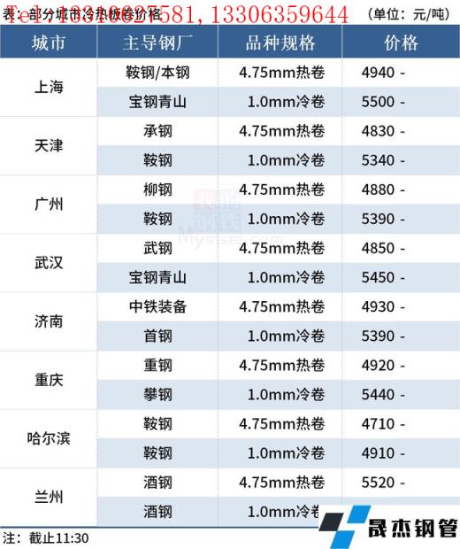 ◎武漢:27日早盤冷軋市場價格暫穩,1.0寶鋼青山卷5450,1.5卷5420,3.0卷6000。(單位:元/噸)