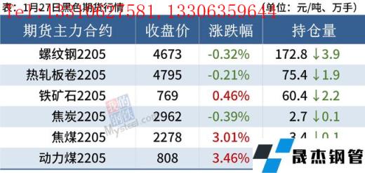 焦炭:1月27日,焦炭市場暫穩(wěn)運行。唐山地區(qū)大部分鋼企在28日左右均有高爐檢修計劃,個別鋼企表示檢修將持續(xù)到3月中上旬。山西長治地區(qū)1月30日-3月13日冬奧會期間,區(qū)域內(nèi)焦企結(jié)焦時間延長至72小時限產(chǎn)政策影響;個別焦企明后兩天,環(huán)保管控結(jié)焦時間將延長至72小時,大部分焦企暫無接到冬奧會相關(guān)限產(chǎn)通知。焦企開工都維持在較高水平,焦企多保持低庫存或零庫存,臨近年尾,出貨力度加快,下游無縫鋼管廠家多正常接貨,近期受風雪等惡劣天氣影響,汽運不便,短期無縫鋼管廠家需求尚可,保持正常按需采購節(jié)奏,預計短期內(nèi)焦炭市場繼續(xù)偏穩(wěn)運行,后期需繼續(xù)關(guān)注環(huán)保政策、冬奧會、原料成本對焦炭價格的影響。