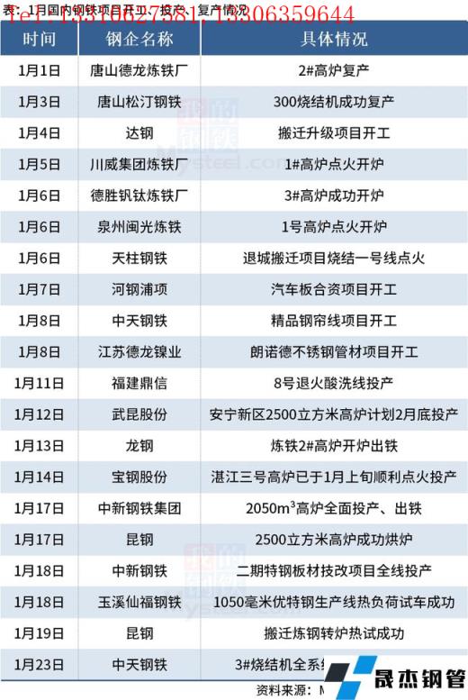 免責聲明:本網站(山東聊城晟杰無縫鋼管廠www.centurybiz.cn)刊載的“1月國內20個鋼鐵項目開工、投產和復產”等均源于網絡,版權歸原作者所有,且僅代表原作者觀點,本文所載信息僅供參考。轉載僅為學習與交流之目的,如無意中侵犯您的合法權益,請及時聯系刪除。本網站刊登此篇文章并不意味著本站贊同其觀點或證實其內容的真實性,我們不對其科學性、嚴肅性等作任何形式的保證。如果侵犯了您的版權,請盡快聯系我們予以撤銷,謝謝合作!