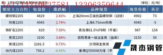 ◎唐山市場因無縫厚壁鋼管廠家高爐檢修增加,焦炭需求有所下降,無縫厚壁鋼管廠家對焦炭有提降意向。個別無縫厚壁鋼管廠家已通知上游供應商自1月29日0點起焦炭采購價下調200元/噸。
