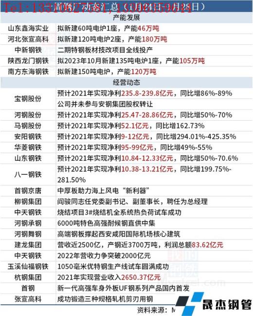 據不完全統計,本周(1月24日-1月28日)有4家無縫厚壁鋼管廠家產能置換方案,具體如下: