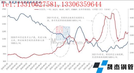 2)而2021年雖沒有再出現(xiàn)2020年4季度集中大幅去產(chǎn)能的情況。但仍出現(xiàn)了2021年三季度焦炭價(jià)格大漲1600元/噸的情形,兩個(gè)半月漲幅48%,漲幅明顯高于2020年四季度。這主要是由于焦煤供應(yīng)受限導(dǎo)致的煤價(jià)大漲推升焦炭成本大幅上漲,以呂梁低硫主焦煤來看,其價(jià)格從6月底至9月底漲了一倍(2050-4100元/噸),焦炭供應(yīng)矛盾從產(chǎn)能約束轉(zhuǎn)移至原料供應(yīng)受限。同樣的,2021年四季度后,國家出臺煤炭保供政策,原料供應(yīng)大幅緩解,同時(shí)需求端鐵水產(chǎn)量大減,最終傳導(dǎo)至焦煤價(jià)格大跌,焦炭價(jià)格應(yīng)聲回落1600元/噸。