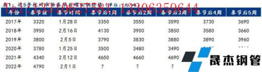 免責聲明:本網(wǎng)站(山東聊城晟杰無縫鋼管廠www.centurybiz.cn)刊載的“近5年春節(jié)前后杭州市場螺紋鋼價格和庫存走勢”等均源于網(wǎng)絡(luò),版權(quán)歸原作者所有,且僅代表原作者觀點,本文所載信息僅供參考。轉(zhuǎn)載僅為學(xué)習與交流之目的,如無意中侵犯您的合法權(quán)益,請及時聯(lián)系刪除。本網(wǎng)站刊登此篇文章并不意味著本站贊同其觀點或證實其內(nèi)容的真實性,我們不對其科學(xué)性、嚴肅性等作任何形式的保證。如果侵犯了您的版權(quán),請盡快聯(lián)系我們予以撤銷,謝謝合作!