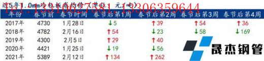 小編匯總近5年春節(jié)后四周冷軋板卷均價變化情況,以供參考。