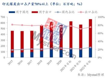 從2015年-2021年印尼煤炭產(chǎn)量結(jié)構可以看出,用于國內(nèi)的煤炭數(shù)量平均占總產(chǎn)量的25%左右,而外部出口要占產(chǎn)量的四分之三,這也與印尼DMO中要求的煤礦應將25%煤炭輸送國內(nèi)電廠基本一致。