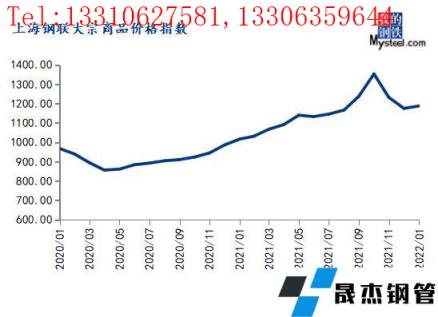 2022年1月份,上海鋼聯(lián)中國(guó)大宗商品價(jià)格指數(shù)(MyBCIC)終值為1187.71,同比上漲16.80%,環(huán)比上漲1.09%。