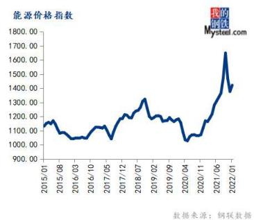 1月份能源價(jià)格指數(shù)為1421.18,環(huán)比上漲3.24%,同比上漲21.58%。