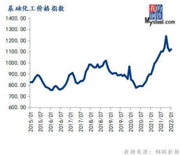 1月份基礎(chǔ)化工價(jià)格指數(shù)為1120.62,環(huán)比上漲1.36%,同比上漲24.66%。