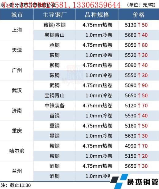 ◎樂從:11日早盤熱卷市場價格上漲40,4.75以上普柳燕5090-5100,2.75普5130-5280錳5280-5300。(單位:元/噸)