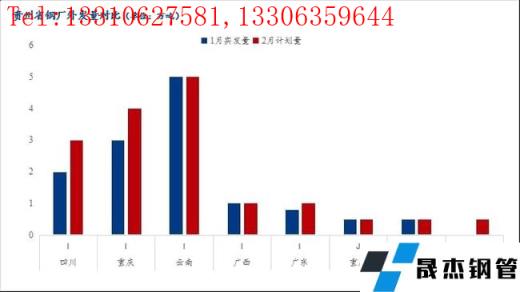 2、2月份貴州省建筑厚壁無縫鋼管資源計劃投放量45萬噸,較上個月增加11萬噸萬噸,增幅達32.35%,主要是2月中旬本地電爐企業基本復產,資源投放加大,而貴州價格逐步擺脫洼地,春節期間省外累庫速度明顯,2月份恐加大對貴州區域資源投放。