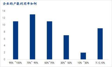 4、54.72%的企業產能利用率還不足70%,未來產能釋放空間較大,且45.28%企業的庫存同比出現了上升,這對企業資金流也是一個考驗;