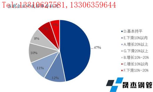 3、訂單方面穩中有漲。與去年同期相比,企業的訂單有增長的占比20%,其中增長10%以內的占比7%,增長10%以上的占比13%;基本持平的占比62%;當前所在企業的訂單狀況有所下滑的占比18%。