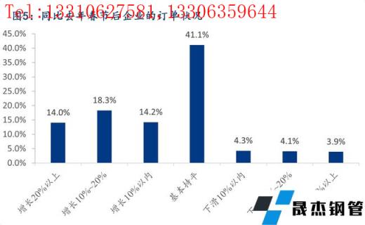 據調研,今年企業訂單狀況較去年節后同期相比有明顯好轉,企業訂單較去年持平和增加的樣本比例高達87.7%,僅12.3%的樣本企業訂單狀況較去年有所下滑,其中訂單數下滑20%以上的企業占比3.9%。