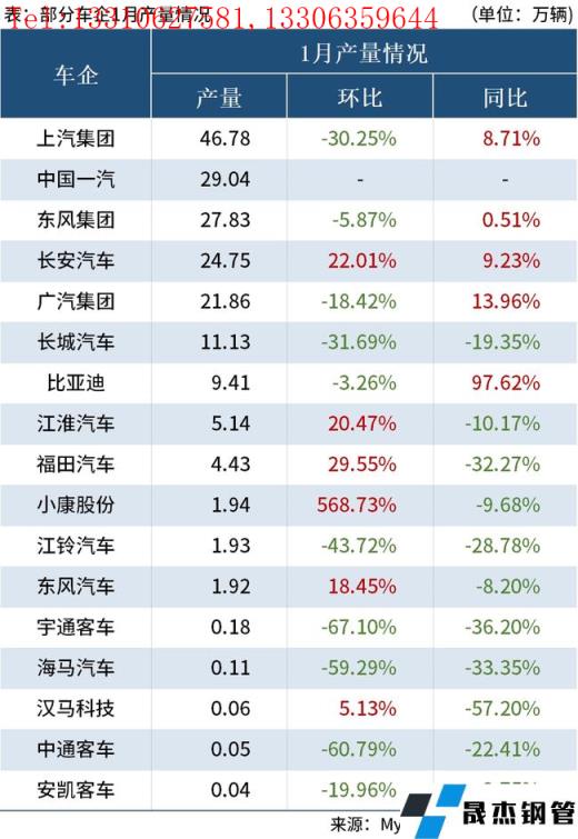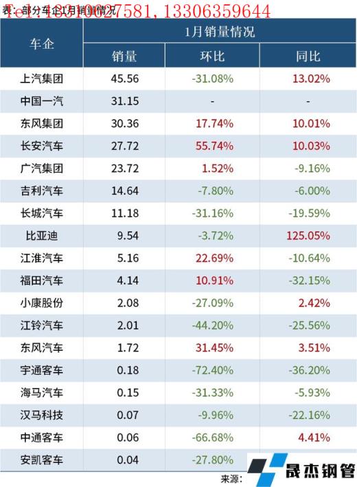 免責聲明:本網站(山東聊城晟杰無縫鋼管廠www.centurybiz.cn)刊載的“1月我國汽車產銷降幅明顯,多數車企呈現雙位數下跌”等均源于網絡,版權歸原作者所有,且僅代表原作者觀點,本文所載信息僅供參考。轉載僅為學習與交流之目的,如無意中侵犯您的合法權益,請及時聯系刪除。本網站刊登此篇文章并不意味著本站贊同其觀點或證實其內容的真實性,我們不對其科學性、嚴肅性等作任何形式的保證。如果侵犯了您的版權,請盡快聯系我們予以撤銷,謝謝合作!