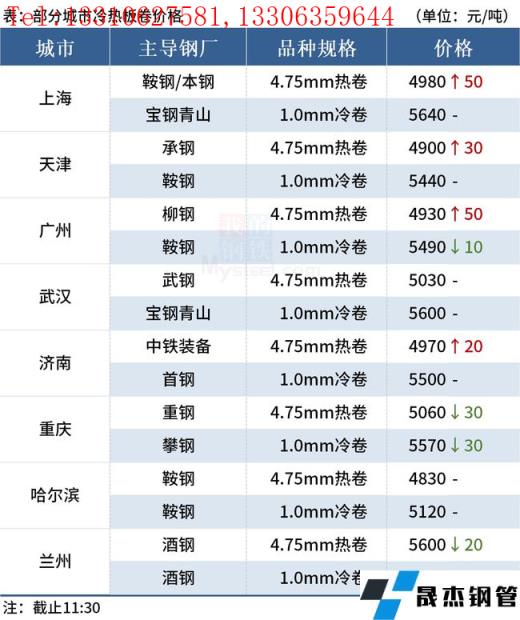 ◎樂從:16日早盤熱卷市場(chǎng)價(jià)格上漲50,4.75以上普柳燕4930-4940,2.75普5000-5150錳5120-5140。(單位:元/噸)