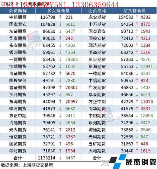 截至2月16日收盤,螺紋鋼2205收4832元/噸,漲1.85%;熱卷2205收4939元/噸,漲1.46%;鐵礦石2205收720元/噸,跌1.1%。