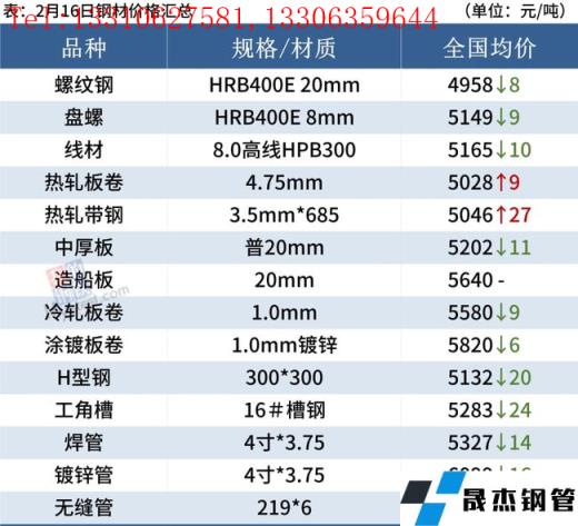 建筑厚壁無縫鋼管:2月16日,全國31個(gè)主要城市20mm三級(jí)抗震螺紋鋼均價(jià)4958元/噸,較上個(gè)交易日跌8元/噸。短期來看,隨著原料價(jià)格的走弱,需求持續(xù)低迷,市場(chǎng)悲觀情緒漸濃,貿(mào)易商低價(jià)套現(xiàn)操作較為普遍。元宵之后下游工地存在一定復(fù)工預(yù)期,但未來幾日又將持續(xù)雨水天氣,需求釋放力度仍有待考證,預(yù)計(jì)17日國內(nèi)建筑厚壁無縫鋼管價(jià)格或?qū)⒅沟蠓€(wěn)。