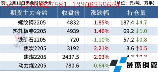 熱軋板卷:2月16日,全國24個(gè)主要城市4.75mm熱軋板卷均價(jià)5028元/噸,較上個(gè)交易日上漲9元/噸。早盤維穩(wěn),現(xiàn)貨報(bào)價(jià)部分地區(qū)補(bǔ)跌,成交表現(xiàn)偏弱,午后期卷上漲,下游采購量稍有好轉(zhuǎn),全天成交一般。綜合來看,目前冬奧會(huì)正在舉行,全國兩會(huì)等也即將召開,在無縫厚壁鋼管廠家限產(chǎn)擾動(dòng)下熱卷產(chǎn)量下降,壓縮熱卷現(xiàn)貨供應(yīng),低供應(yīng)格局給予卷價(jià)一定支撐。但后市需要關(guān)注冬奧會(huì)后,供應(yīng)是否會(huì)出現(xiàn)階段性回升,并且月底前需求沒有如期兌現(xiàn),屆時(shí)供需矛盾將會(huì)凸顯。綜合來看,預(yù)計(jì)17日熱軋板卷價(jià)格或震蕩偏強(qiáng)為主。
