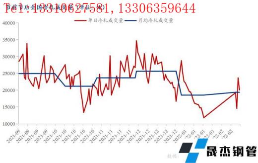 2022年2月17日(農(nóng)歷正月十七)全國162家冷軋成交量為20073噸,年后成交量最高值23649噸,周度平均成交量為19378噸,與9月份以來最低月均成交量21184噸相比,降幅為8%左右,可見當期市場需求并未完全開啟。并且多數(shù)商家表示,除個別天數(shù)達到正常成交外,其余基本在正常5-6成水平。