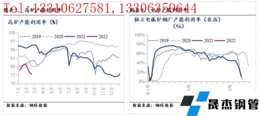 1、供應端,下周產量回升預期增加。截至2月18日,高爐開工率69.58%,較上周增加1.39%,厚壁無縫鋼管供應緩慢回升。低產量一直是此前厚壁無縫鋼管價格上漲的主要因素之一,但下周或將繼續回升。據調研,2022年春節后鋼鐵企業復工復產主要集中在節后第2-3周,對應時間即2月14至2月25日;另一方面,華北地區此前偏低的高爐開工率與冬奧會限產也有較大關系,冬奧會結束時間在2月20日,此后華北地區無縫厚壁鋼管廠家復產可能性也較大。由此可知,供應端復產預期較強,空間較大,或給厚壁無縫鋼管價格帶來一定壓力。