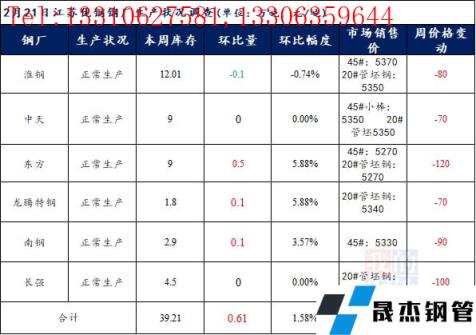 江蘇優(yōu)特?zé)o縫厚壁鋼管廠家棒材總庫存39.21萬噸,較上周上升0.61萬噸,環(huán)比增1.58%,較去年同期下降8.3萬噸,同比降17.47%,目前江蘇優(yōu)特?zé)o縫厚壁鋼管廠家均正常生產(chǎn)。