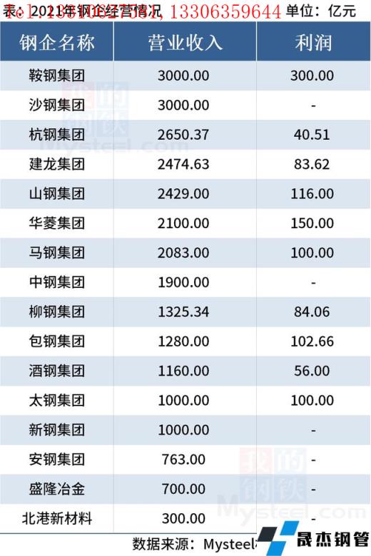 免責聲明:本網站(山東聊城晟杰無縫鋼管廠www.centurybiz.cn)刊載的“16家鋼企2021年營收超2.7萬億元”等均源于網絡,版權歸原作者所有,且僅代表原作者觀點,本文所載信息僅供參考。轉載僅為學習與交流之目的,如無意中侵犯您的合法權益,請及時聯系刪除。本網站刊登此篇文章并不意味著本站贊同其觀點或證實其內容的真實性,我們不對其科學性、嚴肅性等作任何形式的保證。如果侵犯了您的版權,請盡快聯系我們予以撤銷,謝謝合作!