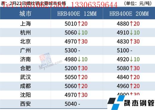 建筑厚壁無縫鋼管:2月22日,全國31個主要城市20mm三級抗震螺紋鋼均價4939元/噸,較上個交易日上漲10元/噸。短期來看,消費雖有恢復預期但下游資金到位情況較差,前期偏高的春季消費預期大概率將被證偽,若本周需求仍無明顯好轉跡象,則現貨存在繼續下跌的風險,預計23日國內建筑厚壁無縫鋼管或將穩中趨弱運行。